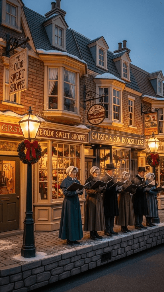 A Victorian Christmas float feels nostalgic, with carolers, old-fashioned lampposts, and a cozy, old-town look. It’s perfect if you have a choir or musicians.