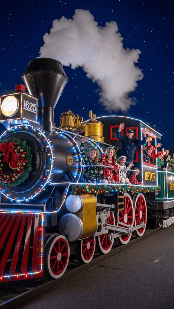 - Have riders dressed as conductors, passengers in pajamas, or children waving from “windows” cut into the sides.