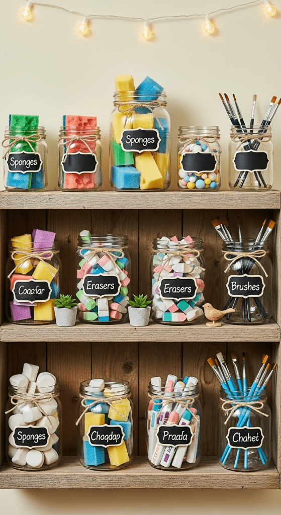 - Place each category into a separate jar; align jars on a shelf or tray.