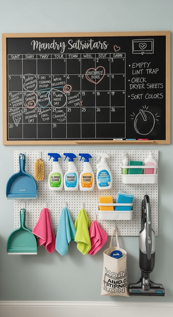 Combine chalkboard paint and pegboards for visual organization and family communication.