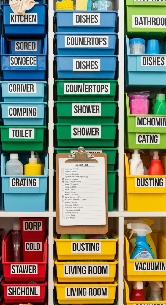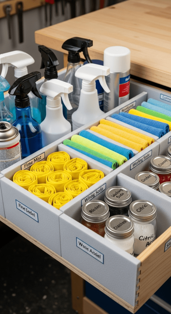 - Refresh labels seasonally and group supplies by use (“daily,” “weekly,” “deep clean”).
