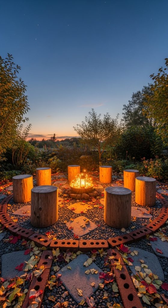 - Lay circular stepping stones or bricks in a ring to define a small seating circle, leaving the center empty.
