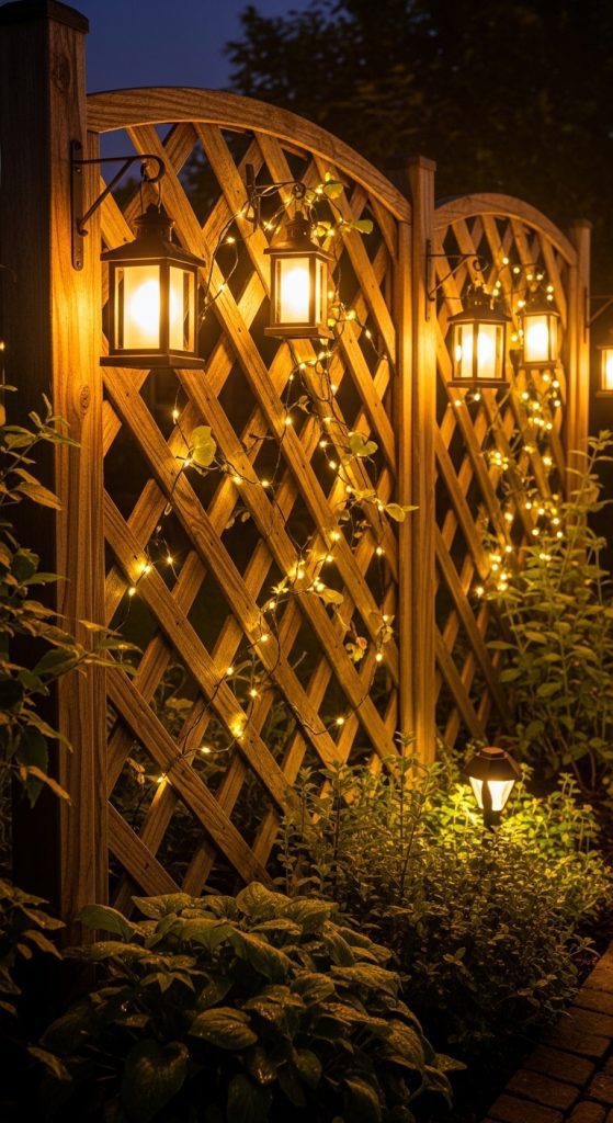 A fence that looks like a simple lattice by day but transforms into a glowing lantern wall after dark.